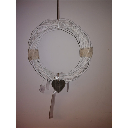 Koszorú vessző D35cm szíves mosott fehér