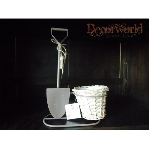 Kaspó fém/műa ásó dekorral WELCOME felirattal 14x23x35cm barna/fehér
