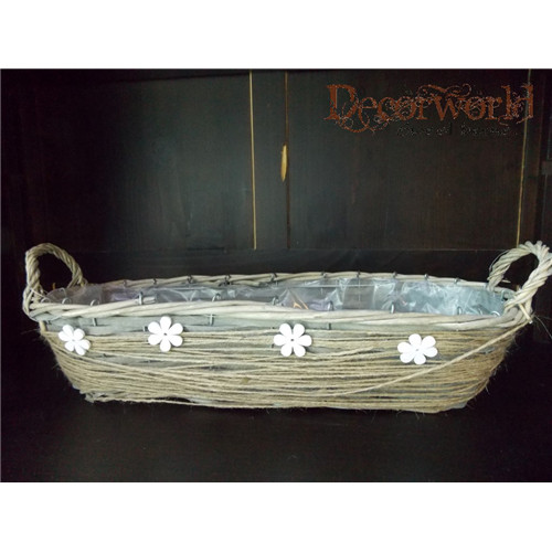 Kosár vessző ovális 45x15x10cm virág dekor natúr barna