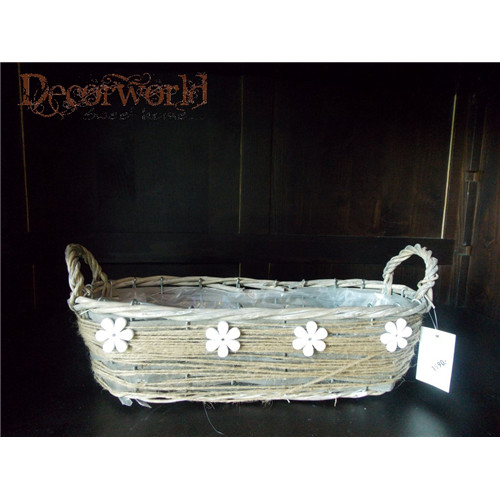 Kosár vessző ovális 33,5x11,5x9cm virág dekor natúr barna