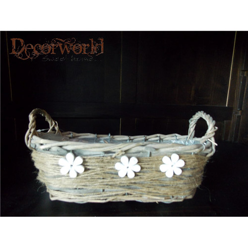 Kosár vessző ovális 26x10,5x8cm virág dekor natúr barna