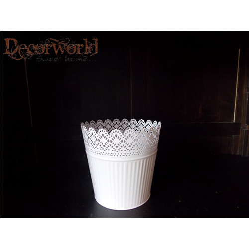 Kaspó cink kerek csipke mintával 18x16,5cm - Fehér