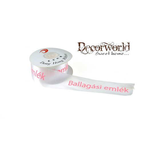 Szalag szatén 38mmx10m rózsaszín "Ballagási emlék" feliratos fehér