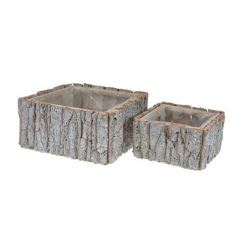 Kosár fa/káreg szögletes S/2 11//15cm mosott fehér