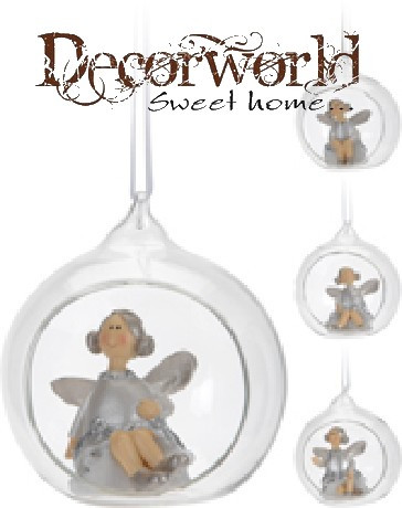 Angyalka függő üveggömben 85x75x100 mm - 4 féle