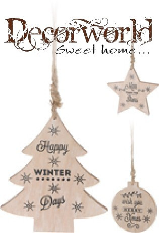 FÜGGŐDÍSZ NATUR FÁBÓL KARÁCSONYI FELIRATOS 13X1X15CM, s/ 1 db