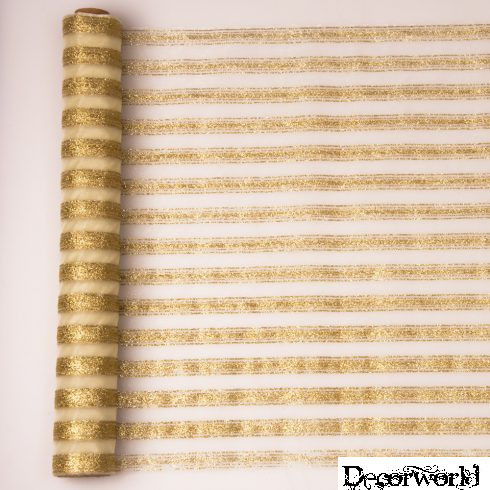 ARANY GLITTER CSÍKOS ORGANZA, KRÉM ALAPSZÍNNEL 39CM X 9.1M