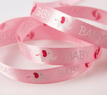 "BABY" FELIRATOS SZATÉN SZALAG 12MM X 20M - RÓZSASZÍN
