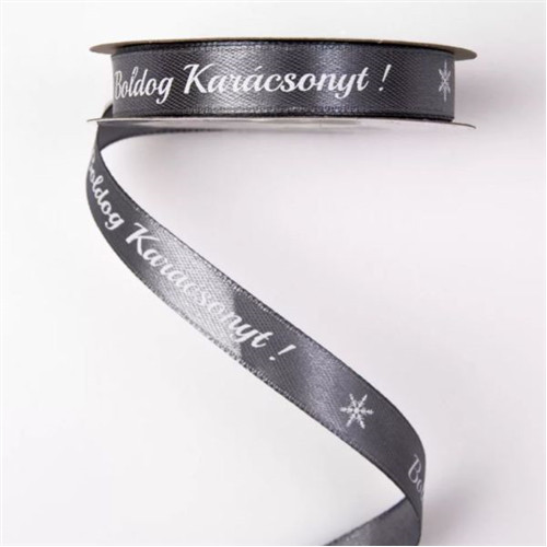 Szatén szalag 12mm/20m "Boldog Karácsonyt!" feliratos - Kékes ezüst/fehér
