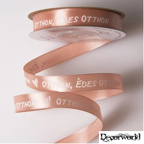 "OTTHON, ÉDES OTTHON" FELIRATOS SZATÉN SZALAG 12MM X 20M - PÚDER BÉZS