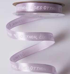"OTTHON, ÉDES OTTHON" FELIRATOS SZATÉN SZALAG 12MM X 20M - VILÁGOSLILA