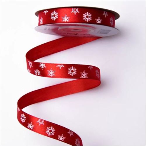 Szatén szalag Hópelyhes 12mm x 20m  - Piros