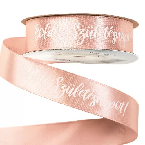 Szatén szalag "Boldog Születésnapot!" feliratos 20mm/20m - Púder bézs