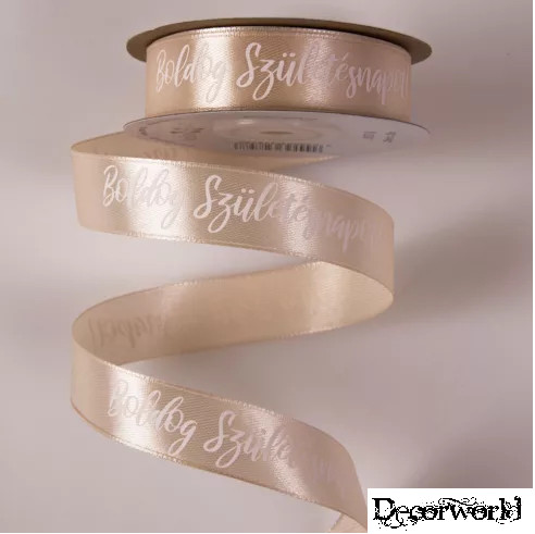 Szatén szalag "Boldog Születésnapot!" feliratos 20mm/20m - Pezsgő