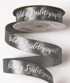 Szatén szalag "Boldog Születésnapot!" feliratos 20mm/20m - Kékes ezüst
