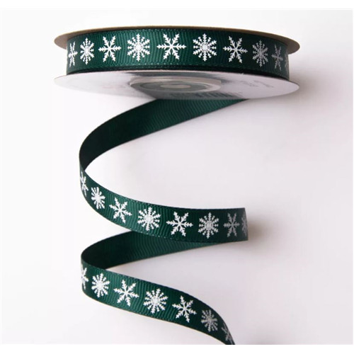 Ripsz szalag 12mm x 20m "Hópelyhes" - Sötétzöld