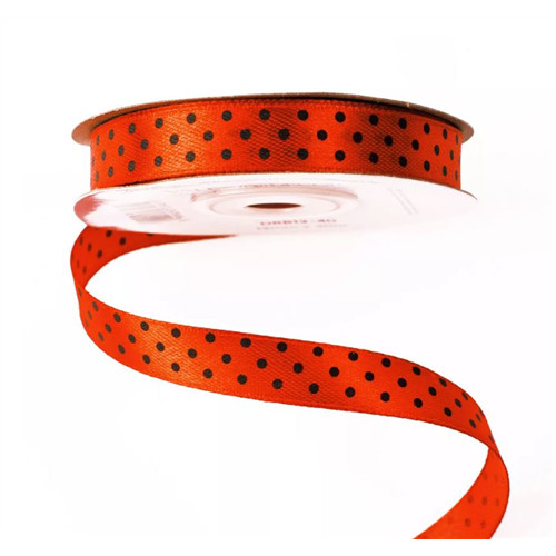 Szatén szalag 12mm/20m fekete pöttyös - Piros