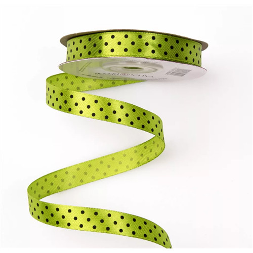 Szatén szalag 12mm/20m fekete pöttyös - Teazöld