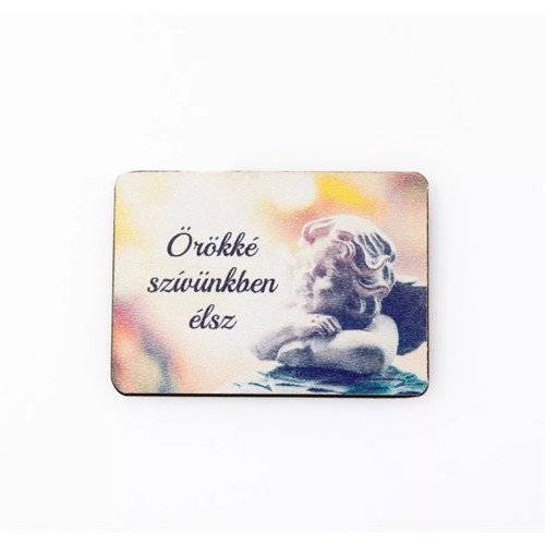 ÖRÖKKÉ SZÍVÜNKBEN ÉLSZ" FELIRATOS, ANGYALKÁS DEKOR TÁBLA 7 X 5CM /darab