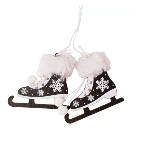 Szőrmés fa korcsolya 8,5x7x20,5 cm akasztható - Fekete/fehér