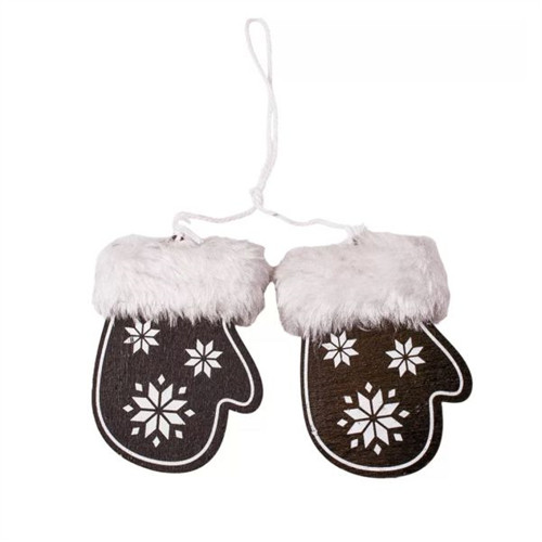 Szőrmés fa kesztyűcske 6,5x8,5x20,3 cm akasztható - Fekete/fehér