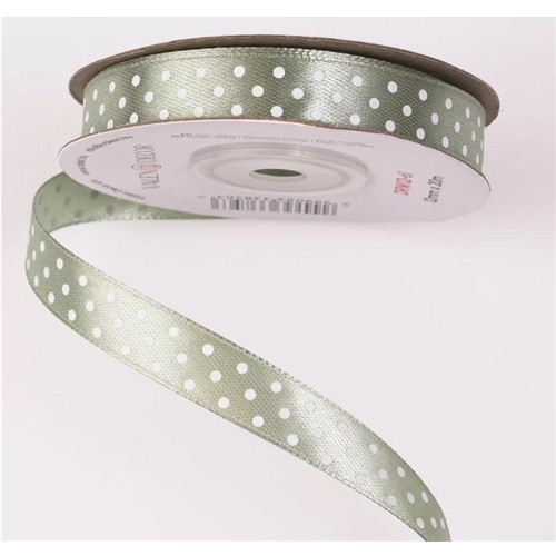 Szatén szalag 12mm x 20m fehér pöttyös - Vintage zöld