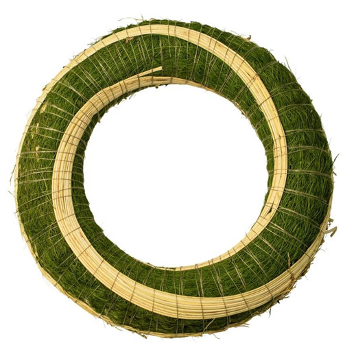 Szizállal bevont széna koszorúalap cirokkal díszítve 20cm - Zöld