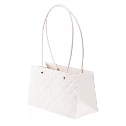 Virágtáska rombusz mintás 22x10,5x13,5cm - Fehér (10db/csom.)