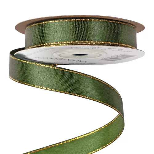 Szatén szalag arany szegéllyel 16mm/20m - Sötétzöld