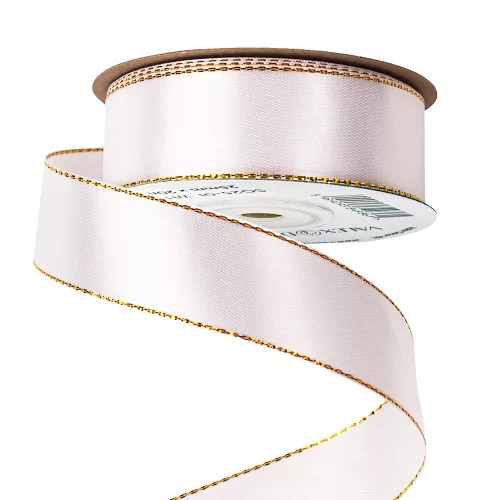 Szatén szalag arany szegéllyel 25mm/20m - Fehér