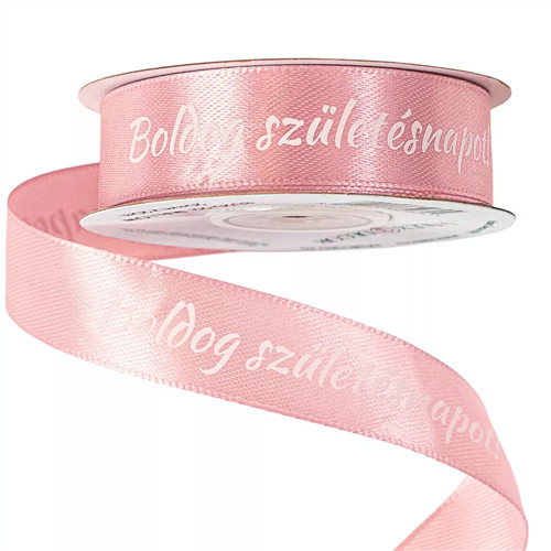 Szatén szalag "Boldog Születésnapot!" feliratos 20mm/20m - Mályva