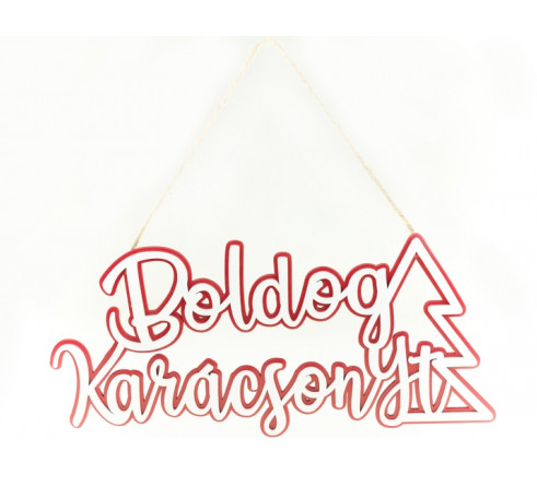 Dekoráció fa 30x15cm Boldog Karácsonyt akasztós - Piros