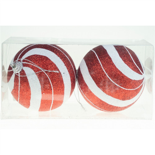 Gömb foam 10cm csíkos glitteres - Piros S/2