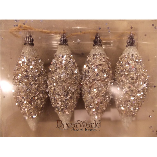 Karácsonyfa dísz Hosszúkás Ezüst S/4db