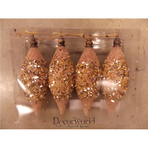 Karácsonyfadísz Hosszúkás Rózsaarany S/4db