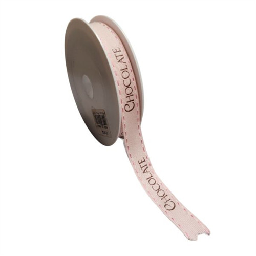 Szalag textil "CHOCOLATE" felirattal 12mm x 25m - Rózsaszín