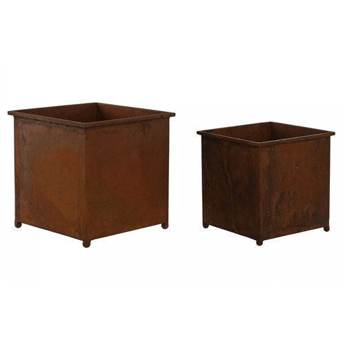 Kaspó szett szögletes fém 24x24x24cm - Barna S/2