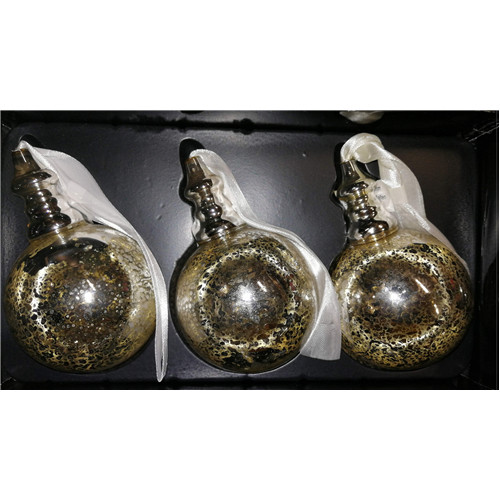 Gömb üveg szalaggal S/3 D7cm ezüst