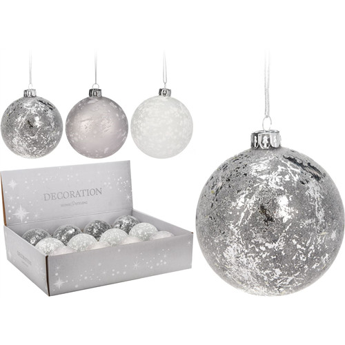 Gömb üveg deres minta D8 több féle fehér/ezüst