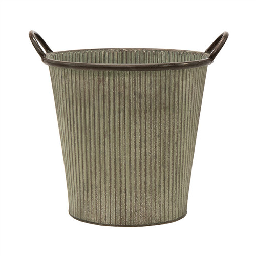 Fém kaspó füllel Folks Rib 24x23,5 cm - Antik zöld