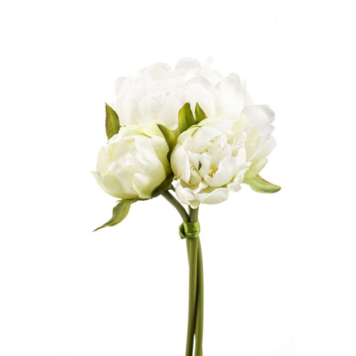 Peónia csokor x3 23cm - Krém/zöld