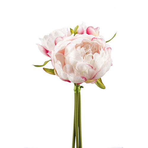 Peónia csokor x3 23cm - Krém/világos rózsaszín