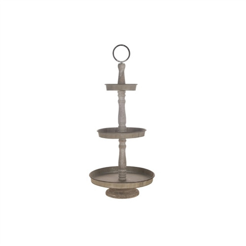 Kínálótálca 3 szintes fém, fa 39x39x89cm barna,fehér