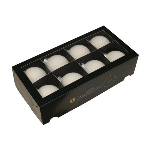 Üveggömb 8cm - Szatén fehér S/8