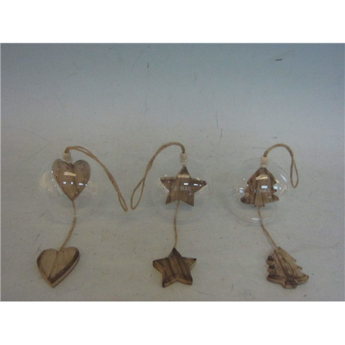 Gömb üveg fa dísszel akasztós 8cm - 3 féle