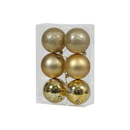 Gömb műanyag 8cm - Arany fényes-matt-glitteres S/6