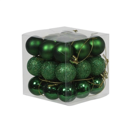 Gömb műanyag 3cm - Zöld fényes-matt-glitteres S/27