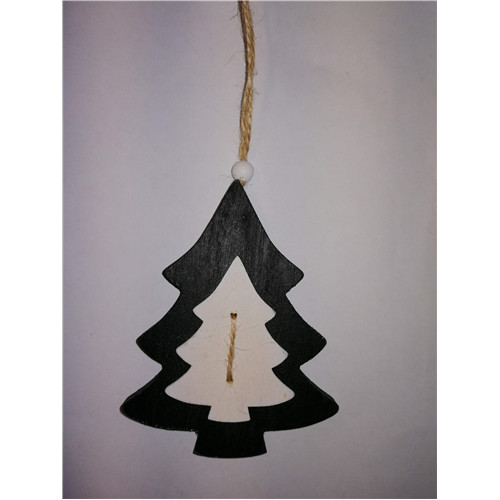 Akasztós dísz fenyőfa fa 9.5x12cm fekete S/2 SSS