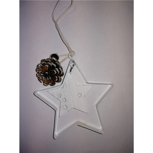 Csillag akasztós fém/fa 10cm fehér