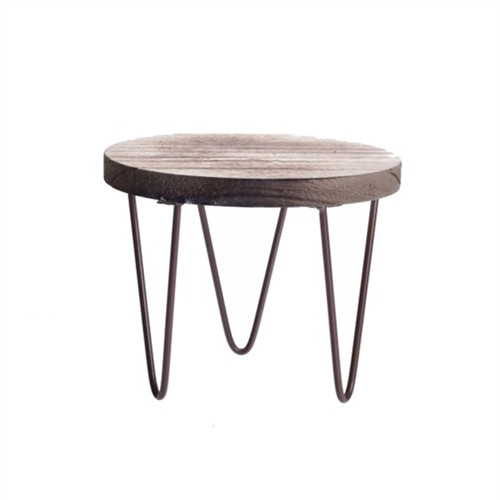 Kis szék kerek fém-fa 20x17cm - Natúr